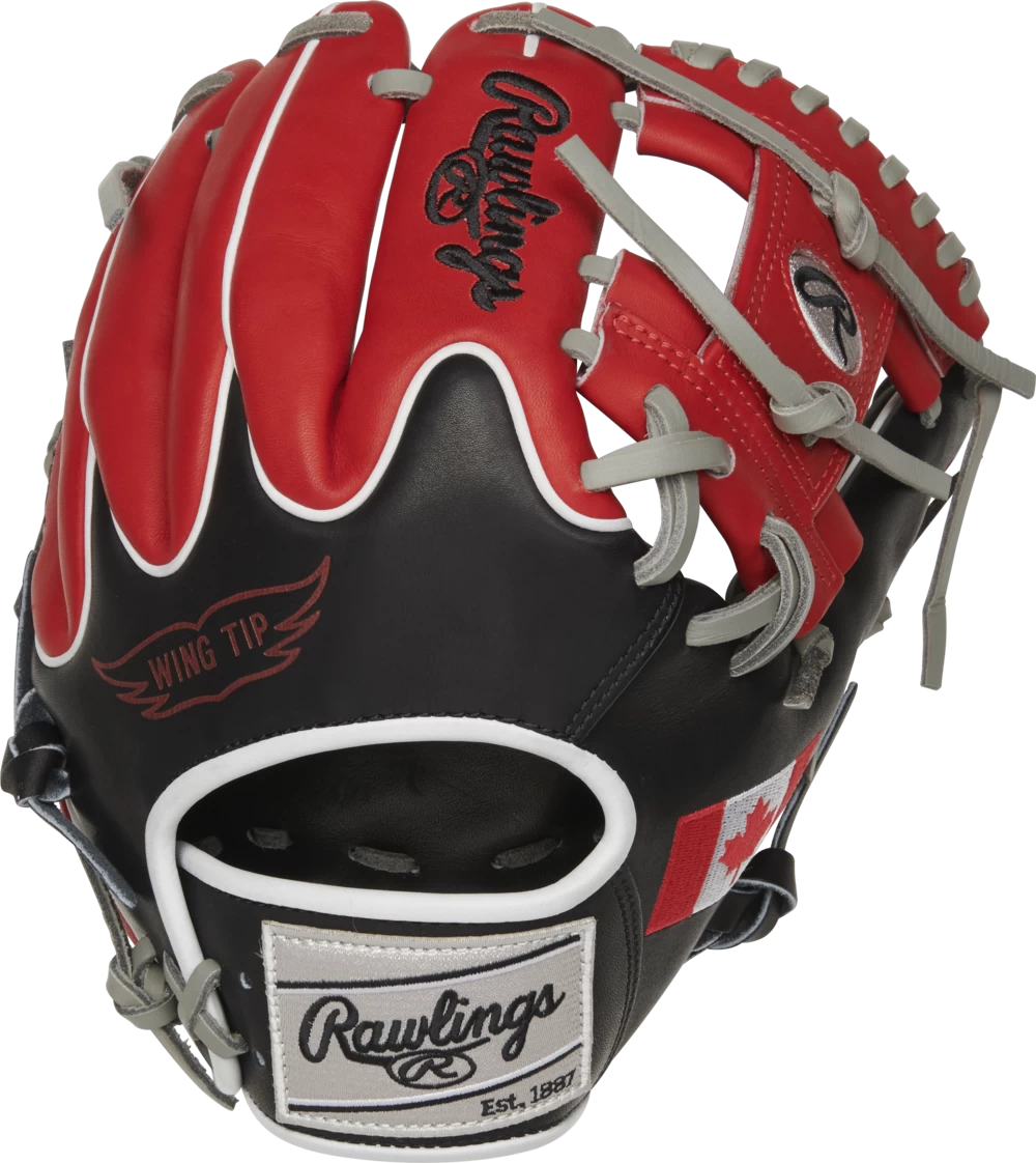 The Heart of the Hide Flag Collection is made up of special, limited edition designs to celebrate the teams representing their respective country this summer. The Canadian flag embroidered on the thumb of this Heart of the Hide 11.5-Inch Canada infield glove, along with the red palm stamping, provides the perfect touch to its stylish three-tone design.
